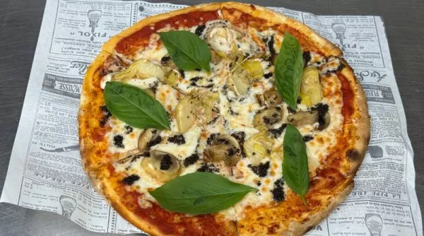 רוטב עגבניות טריות מאיטליה, פטריות, ארטישוק, מחית כמהין, גבינת מוצרלה