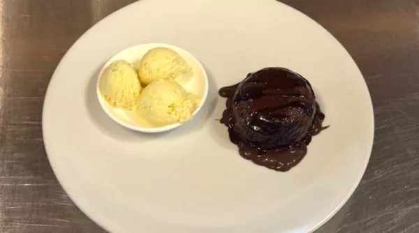 בחימום קל במילוי שוקולד איכותי, מוגש עם גלידה וניל