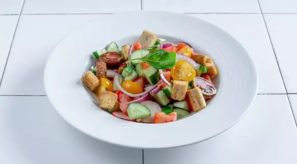 עגבניות, מלפפון ,צנוניות ,צלפים ,בצל סגול ,עלי בזיליקום ,זיתי קלמטה,רבעי ארטישוק וקורטונים