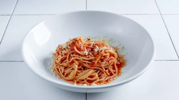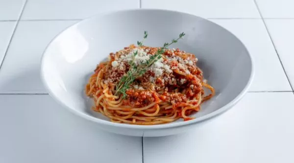 פסטה מסוג ספגטי ברוטב ראגו בקר עם גבינת פרמז’אנו