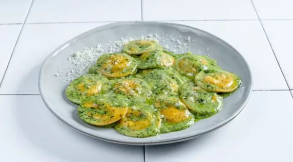 פסטה טרייה במילוי גבינה ברוטב פסטו שמנת או רוזה