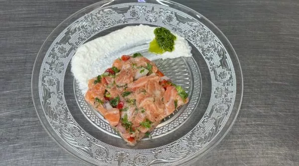 בסביצה בתיבול מיץ לימון,שמן זית כתית, בצל סגול ,גמבה ופטרוזיליה מוגש לצד שמנת חמוצה וסחוג ירוק