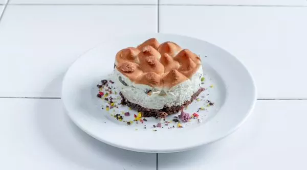 מרנג שוקולד בתחתית, קרם מסקרפונה, שוקולד מריר ונטיפי שוקולד לבן